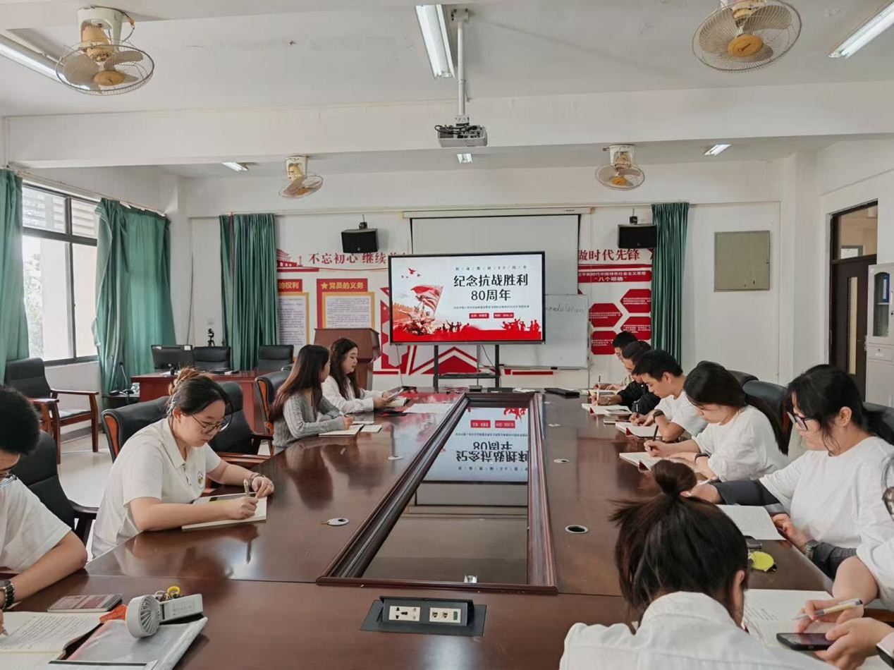 随后,党支部书记宋君雪以“纪念中国人民抗日战争暨世界反法西斯战争胜利80周年”为题,讲授了一堂主题鲜明、内容深刻的专题党课。她从“纪念抗战胜利”“抗战历史回顾”“当代启示与展望”等多方面系统阐述了中国人民抗日战争的伟大历程与历史意义。强调铭记历史不是为了延续仇恨,而是要以史为鉴、面向未来,从历史中汲取前进的力量。