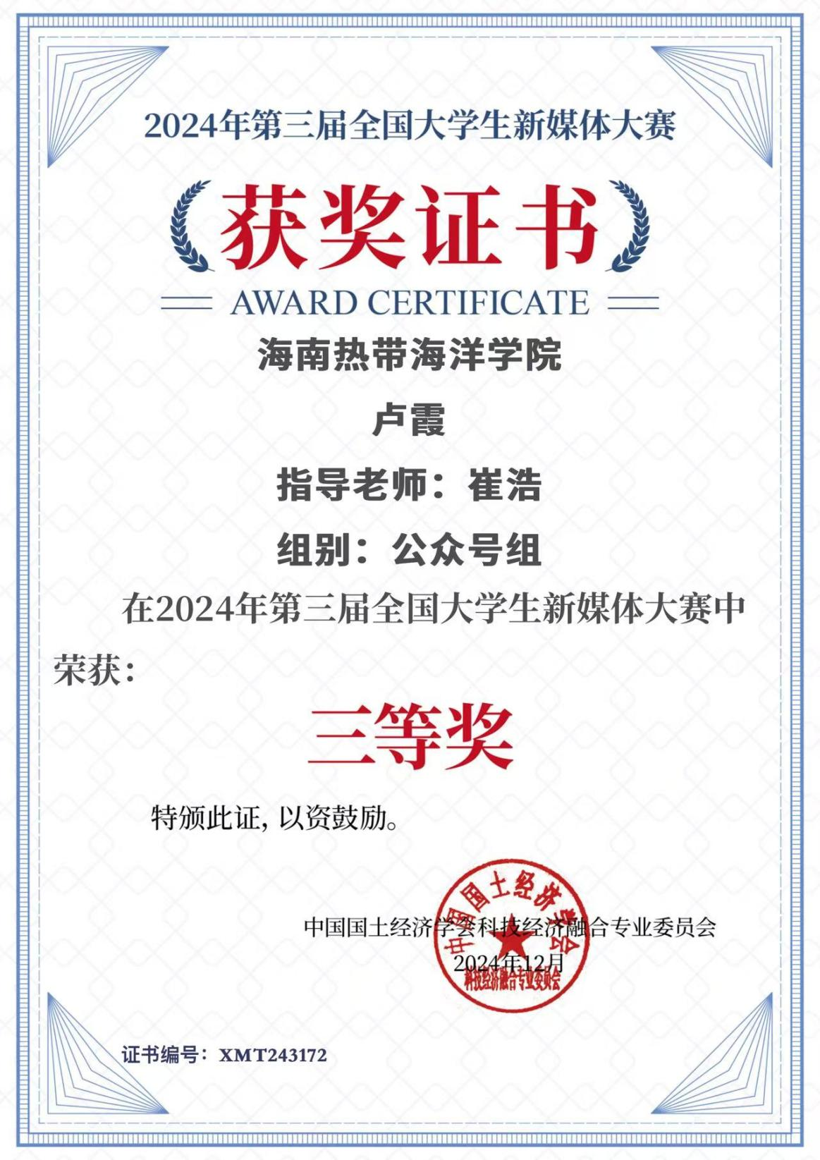 此次获奖不仅是对卢霞同学个人能力的肯定,也是伟德体育官方网站团属新媒体育人成果重要体现。在公司党委的正确领导下,公司团委将继续秉承“三全育人”理念,鼓励和支持员工们积极参与各类学术竞赛和实践活动,不断提升自身的综合素质和创新能力,为公司员工培养工作尽一份力量。