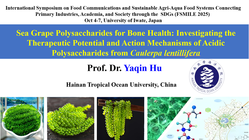胡亚芹教授以线上形式作了题为《Sea Grape Polysaccharides for Bone Health: Investigating the Therapeutic Potential and Action Mechanisms of Acidic Polysaccharides from Caulerpa lentillifera(海葡萄多糖促进骨骼健康:酸性多糖的治疗潜力与作用机制研究)》的大会特邀报告。她在报告中系统阐述了公司在海洋功能性食品成分研究方面的最新进展,展示了海葡萄酸性多糖在促进骨骼健康方面的潜在应用与分子机制,受到与会专家的高度关注与积极评价。